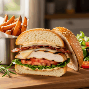 7. Assemble sandwiches: ⁤ Spread herb aioli ‍on both cut sides of bread. Layer grilled chicken, ‍topped ​with cheese slice, allowing it ‌to soften slightly from the chicken’s warmth.