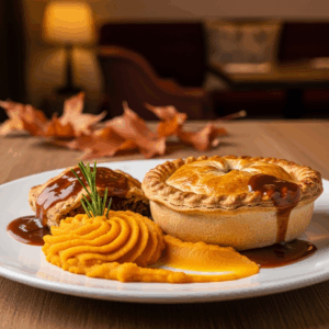 Savory Crocodile Pie Paired with Sweet Potato Mash Flair