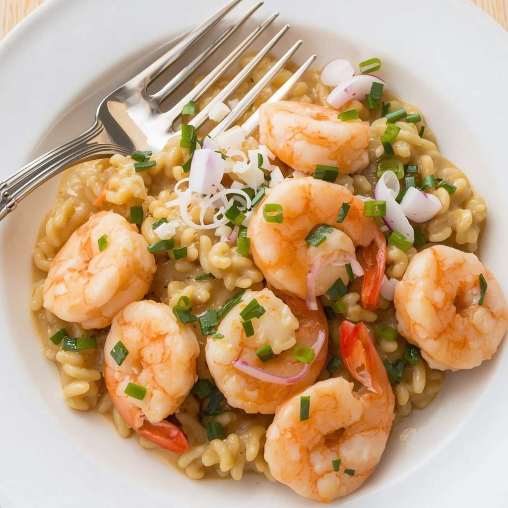Present this creamy shrimp risotto on warm plates, topped with a sprinkle of finely chopped parsley and a light drizzle of extra virgin olive oil for a glossy finish. Serve alongside crusty artisan bread or a crisp green salad to cut through the richness. For a coastal ambiance, pair with a chilled glass of Sauvignon Blanc or Pinot Grigio.A wedge of lemon on the side adds visual appeal and allows guests to add a fresh burst of citrus as desired.