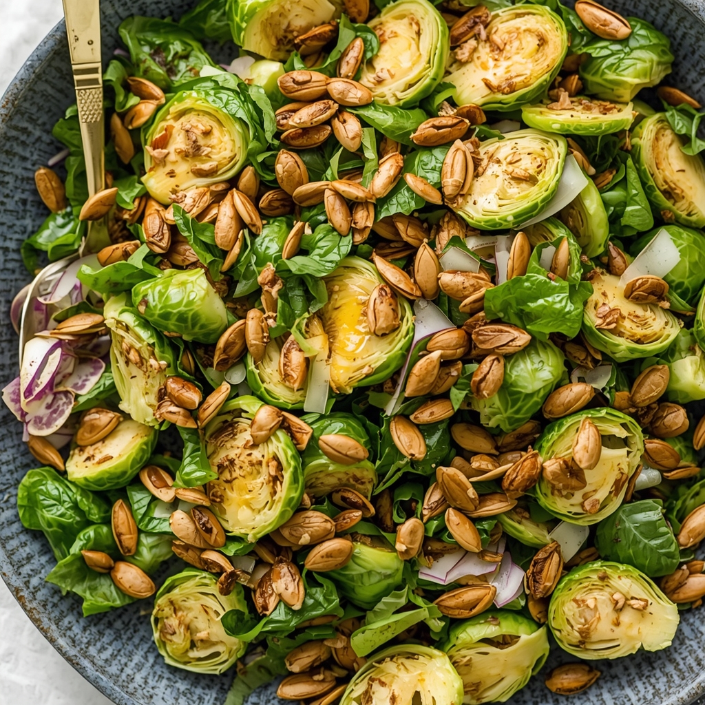 Discover the magic in simple ingredients by embracing the crisp, fresh charm of shaved Brussels sprouts paired with crunchy pumpkin seeds-it’s a salad that seduces the senses and nourishes the body!