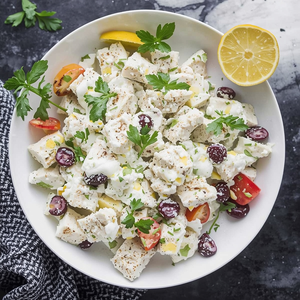 A: Greek chicken salad bursts with Mediterranean flair, combining tender grilled chicken with vibrant veggies like cucumbers, tomatoes, and red onions, plus briny Kalamata olives and creamy feta cheese. The magic lies in the dressing-a tangy blend of olive oil, lemon juice, garlic, and oregano that transforms simple ingredients into a fresh, flavor-packed feast.