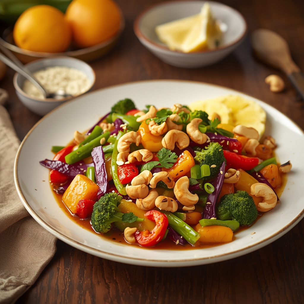 Vibrant Rainbow Veggie Stir-Fry with Crunchy Cashews