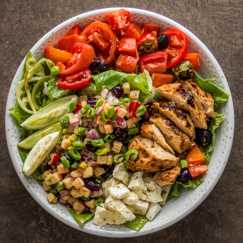 A3: Absolutely! The beauty of this salad is its versatility. Swap grilled chicken for tofu or chickpeas for a vegetarian boost. Add your favorite greens, nuts, or fruits to personalize your bowl. Just keep the fresh, wholesome vibe alive for that perfect fuel-up combo.